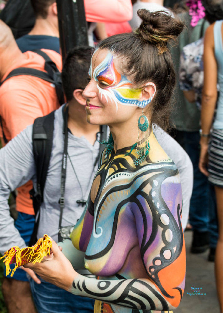 On Summer weekends in NYC, body painting for artistic purposes is allowed.  These photos are from July 2018 and show residents and tourists who choose to get naked and painted.