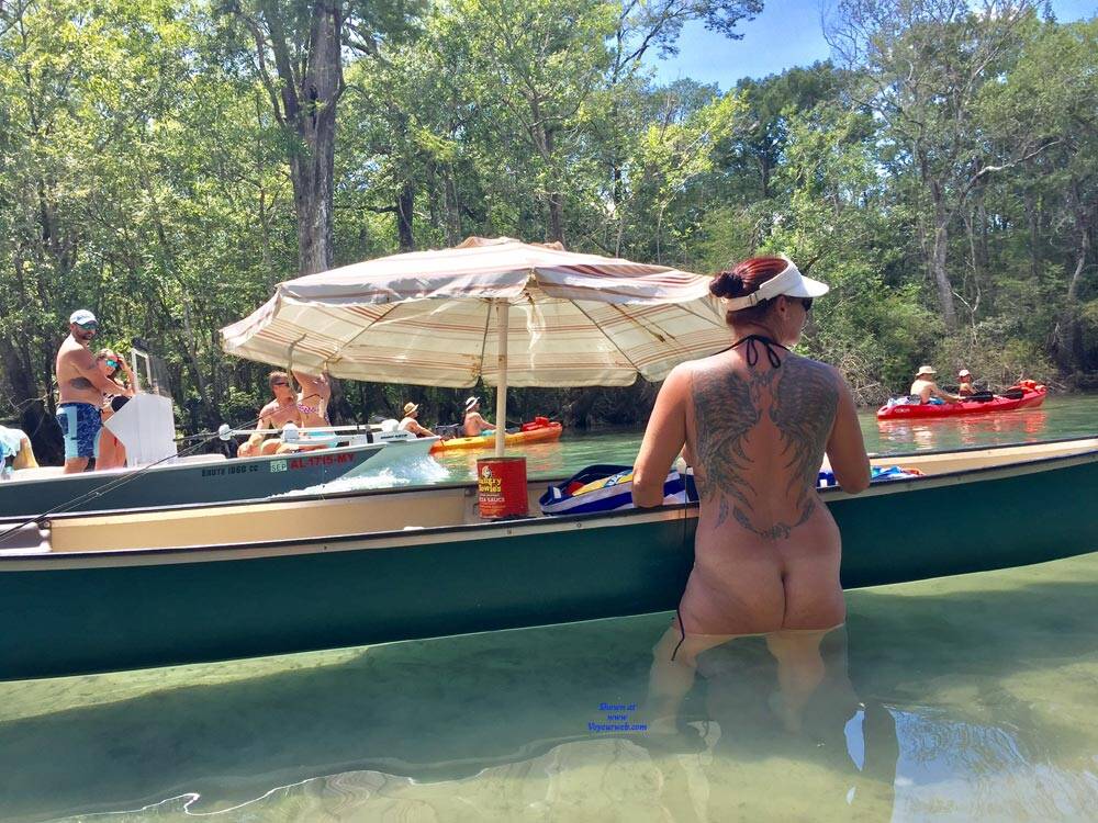 Haven’t been out much since Lisa hurt her neck.  She’s doing better since the surgery.  Now with the COVID-19, not going to be a whole lot of “public” to flash in front of.   So these are last summer on the creek. Enjoy..