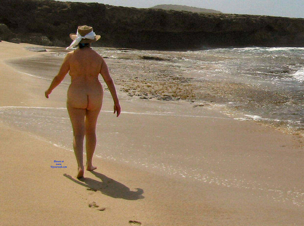 A couple years ago we had the opportunity to spend a week in Aruba. Had a lot of fun while there. The north side of the island was pretty deserted and Kate was happy to shed her clothes for a nude romp in the surf.
